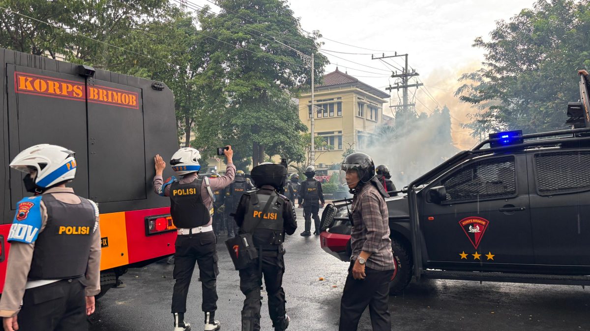Karena kondisi semakin membahayakan masyarakat dan pengguna jalan di sekitar lokasi, petugas akhirnya mengambil langkah tegas dengan menggunakan water cannon dan gas air mata untuk membubarkan massa. Kericuhan membuat massa terpecah menjadi dua kelompok, sebagian bergerak ke arah selatan menuju Jalan Sriwijaya, sementara lainnya ke arah utara menuju depan Kantor Gubernur Jawa Tengah.