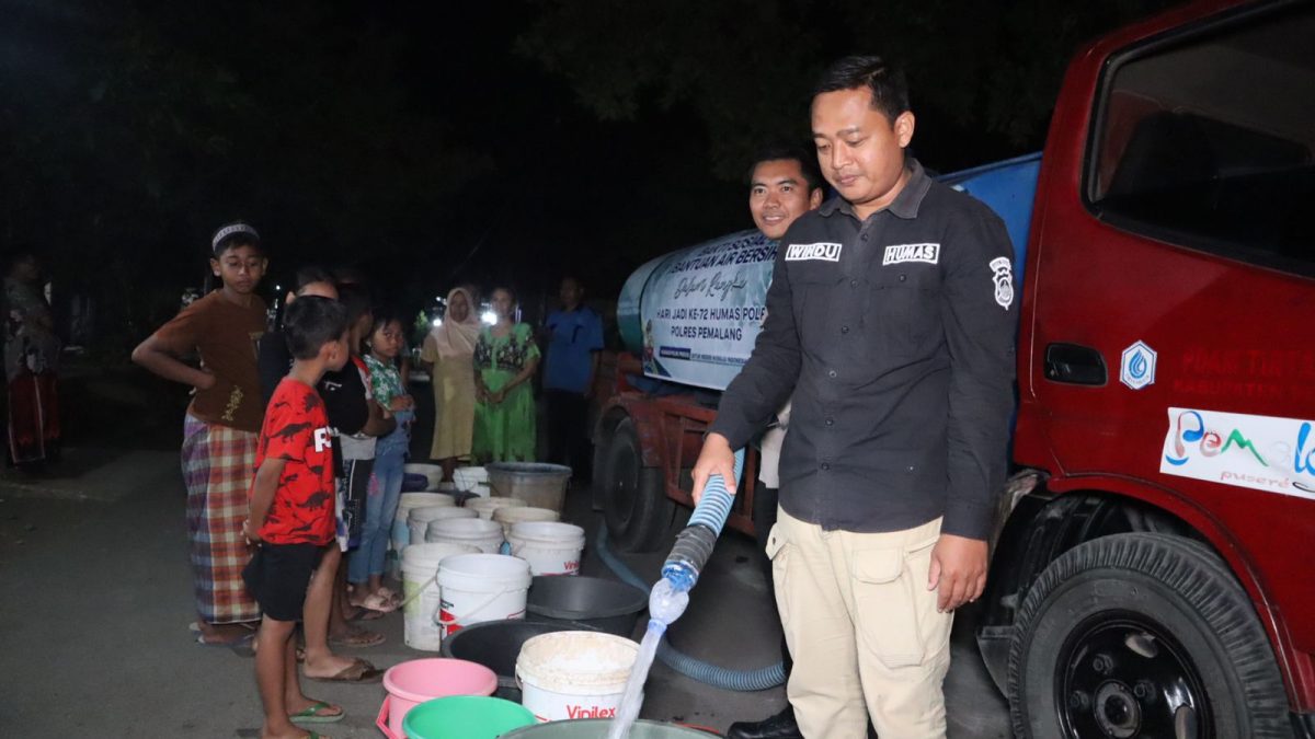 Polres Pemalang – Tribratanews.pemalang.jateng.polri.go.id, Bantuan air bersih yang didistribusikan Humas Polres Pemalang pada malam hari dirasakan sangat membantu warga Desa Kuta Kecamatan Bantarbolang Kabupaten Pemalang, karena kebutuhan air bersih untuk keperluan mandi, cuci dan kakus (MCK) serta konsumsi untuk keesokan harinya dipastikan dapat tercukupi, Rabu (4/10/2023).