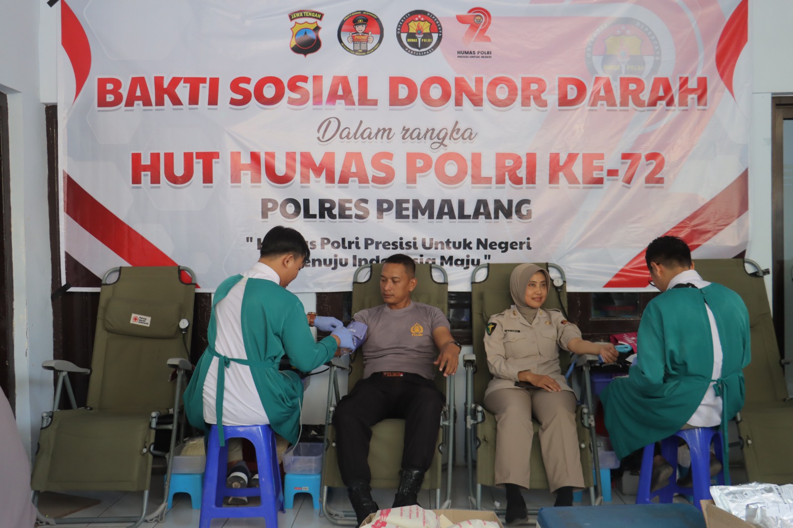 Wartawan dan Pegiat Medsos Pemalang Ikut Donor Darah Sambut HUT Humas Polri ke-72